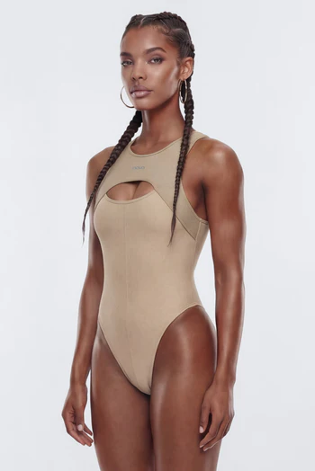 AirSculpt™ Cut Out Sports Bodysuit – Taupe/combo