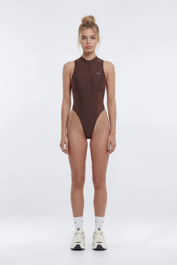 AirSculpt™ Front Zip Sports Bodysuit – Brown