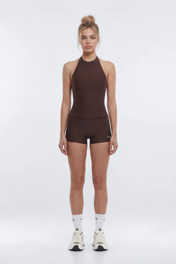 AirSculpt™ High Neck Halter Sports Tank – Brown